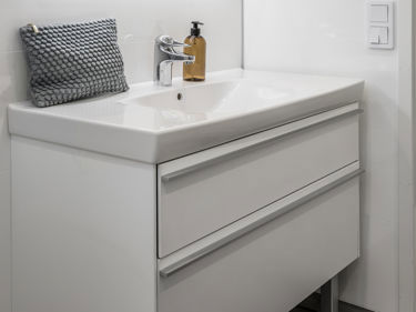 Lyft ditt badrum med ett stilrent och modernt möbelpaket som innehåller underskåp med mjukstängande luckor och spegelskåp med LED-belysning och eluttag.