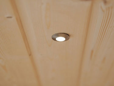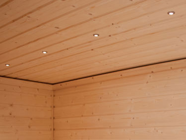 6 st infällda, dimbara LED-spotlights i bastu. Om bastufönster väljs ingår även en spotlight i fönstersmyg.