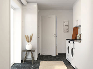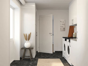 Byt ut dörren i klädvården till en fönsterdörr eller helglasad fönsterdörr och släpp in det naturliga ljuset.