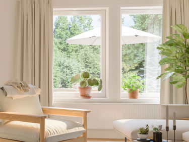 Låga fönster kan väljas i vardagsrum och i kök. Släpper in det naturliga ljuset och är ett snyggt tillval både exteriört och interiört.