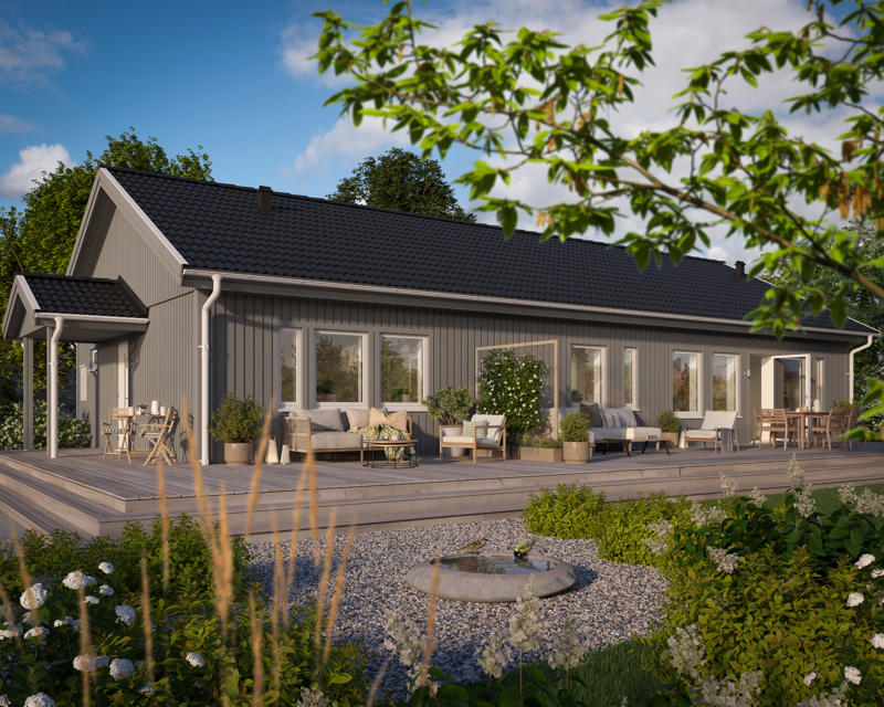 När du köper ett enplanshus från oss är det nyckelfärdigt med totalentreprenad. Det innebär att vi ansvarar för hela byggprocessen – från start till slut – och du behöver inte oroa dig för några överraskningar.