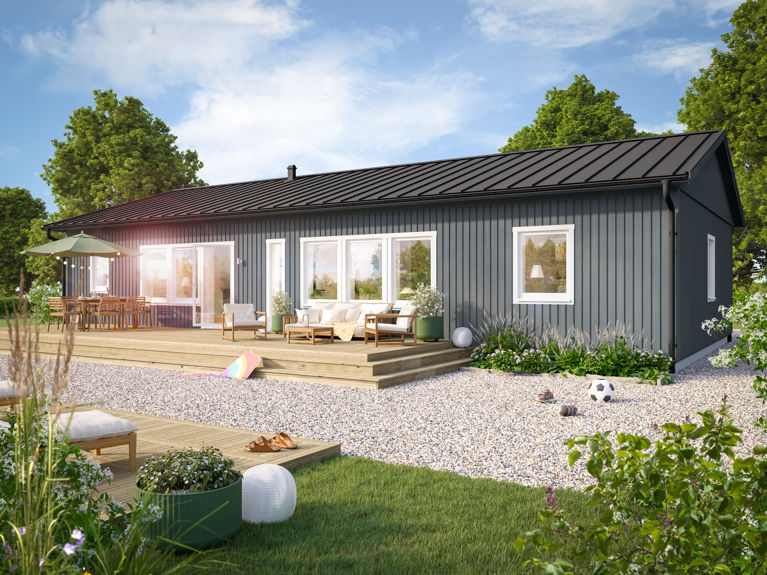 Iris är ett välplanerat enplanshus på 129 m², framtaget med flexibilitet i fokus. Tack vare de olika planlösningarna kan huset enkelt anpassas efter just din familjs behov.