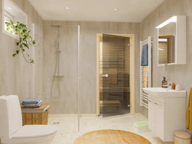 För dig som prioriterar vardagslyx finns en version med ensuite-badrum i anslutning till det stora sovrummet. Vårt populära bastutillval finns också att välja som tillval i huset.