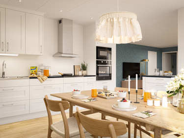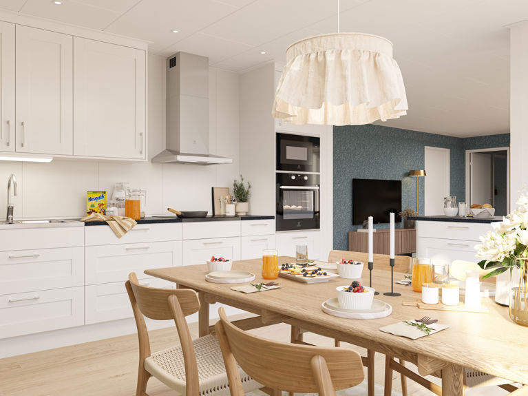 Iris har flera planritningsalternativ, fyra sovrum och en öppen lösning mellan kök och vardagsrum som skapar husets hjärta och blir en naturlig samlingspunkt för middagar, läxläsning, spelkvällar och allt däremellan.