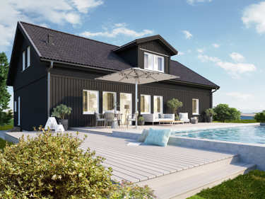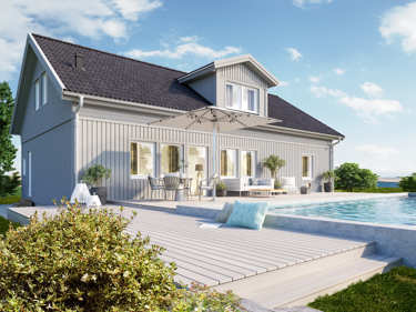 Alla våra 1,5-planshus går dessutom att få med tillvalet 34 graders taklutning med förhöjt väggliv. Det gör ytan på övervåningen rymligare. Även takkupa är ett populärt tillval och gör övervåningen både ljusare och luftigare.