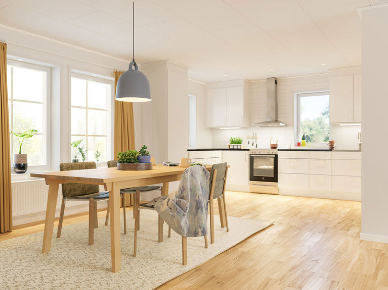 Det är inte för inte du kan hitta Edvards planlösning i både enplanshuset Greta och det lite mindre 1,5-planshuset Astrid. Den är både smart och snygg.