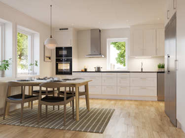 Samtidigt är Selma ett socialt hus. Både kök och vardagsrum får ta ordentligt med plats. Här går det att spela brädspel i ena änden av vardagsrummet och se favoritfilmen i andra. Sommartid behöver du bara öppna upp altandörren och från soffan ha uppsikt över lekande barn.