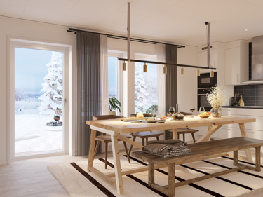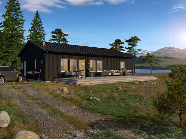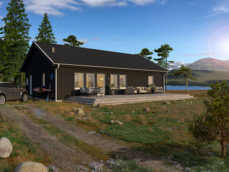 Söker du ett fritidshus för en lite större familj? Då är Eva ett bra val. Ett välplanerat småhus med tre rymliga sovrum och smart förvaring.
