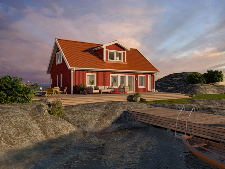 Med Selma får du ett mindre fritidshus med plats för många rum. Praktiskt för den växande familjen som drömmer om ett eget smultronställe.