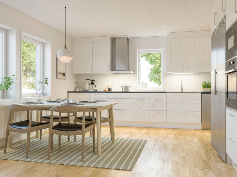 Samtidigt är Selma ett socialt hus. Både kök och vardagsrum får ta ordentligt med plats. Här går det att spela brädspel i ena änden av vardagsrummet och se favoritfilmen i andra. Sommartid behöver du bara öppna upp altandörren och från soffan ha uppsikt över lekande barn.