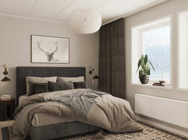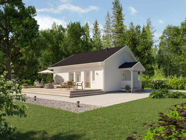 I vårt mysiga fritidshus Siri på 63 m² finns allt du behöver: en öppen kök-/vardagsrumslösning, två sovrum, walk-in closet, badrum, separat WC och ett förråd. Vill du ha bastu? Då kan förrådet enkelt förvandlas till en bastu som tillval.