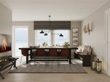 Vårt minsta fritidshus Siri har effektiva och öppna ytor som nyttjar varje kvadratmeter på bästa sätt. Här sparar du byggyta och får samtidigt ett riktigt energismart hem, utan att kompromissa med komforten.