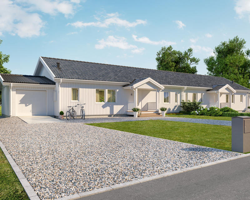 Ett garage eller en carport skyddar inte bara bilen från väder och vind, det kan även fungera som ett extra förvaringsutrymme. Ett dubbelgarage kan vara en bra idé för just parhus. Vi har flera garage och carportar att välja mellan som ett komplement till ditt Älvsbyhus.