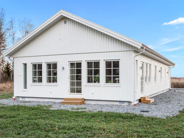 Upptäck vårt trevliga visningshus i Aberga, enplanshuset Villa Göran. Här har vi dessutom fler tomter till salu.