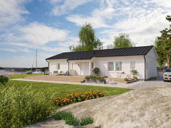 Villa Göran är ett inbjudande och flexibelt enplanshus på 129 m², anpassat för olika typer av familjer. Huset har ett stort och luftigt vardagsrum på 33 m², ett öppet kök på 25 m² och tre sovrum som standard. Det största sovrummet erbjuder eget badrum och klädkammare.