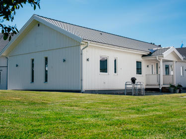 Linnéa stoltserar med det allra största integrerade köket/vardagsrummet av alla våra enplanshus. På 129 m² får du plats för både middagar och kalas.