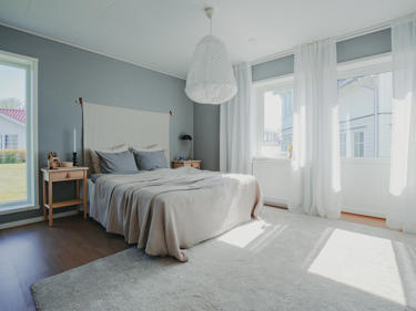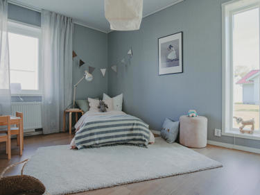 Villa Linnéa är vår mest populära husmodell och levereras med tre sovrum, det största har direkt tillgång till en rymlig klädkammare. För en större familj med behov av ytterligare ett sovrum går det som tillval att få som en del av vardagsrummet.