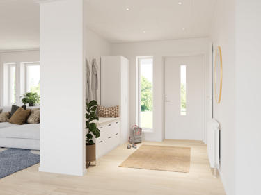 Tre klädkammare, tre ingångar till huset och tre sovrum som standard. Enplanshuset Sofia är huset med riktigt bra utrymme för förvaring.